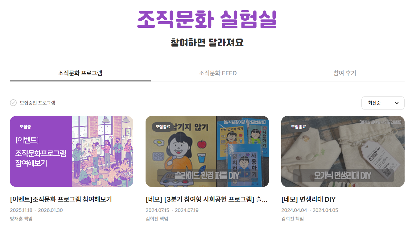 아래의 페이지에서 조직문화 프로그램 참여하기를 체험해보세요!