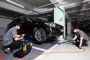 고객은 어디에 계시냐구요? 고객은 서비스를 받을 차량을 지정해준 위치게 두기만 하면 됩니다. 나머지는 모두 ‘넥스트레벨 GO 서비스 매니저’의 몫이에요.