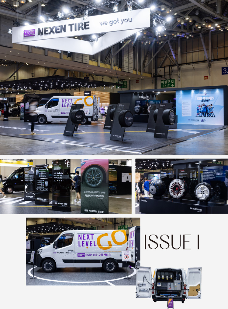 2020년 넥센타이어가 국내 타이어 업계 최초로 론칭한 비대면 타이어 방문 교체 서비스인 ‘넥스트레벨 GO’ 차량도 함께 선보였어요. 차량 안이 신기한지 방문객들이 차 안을 둘러보고 질문도 많이 해주셨답니다.