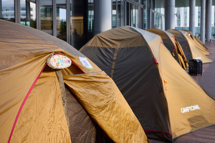 회사에서 가족들이랑 텐트 치고 하룻밤 자기?!