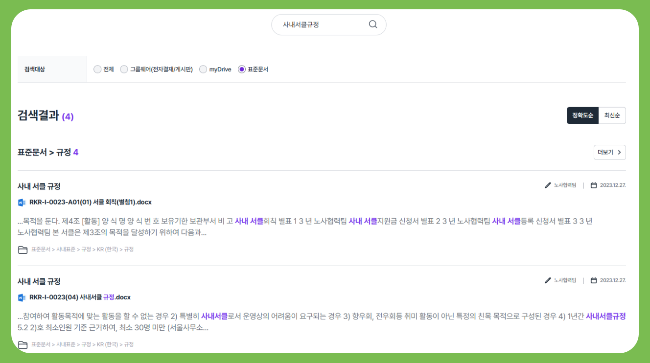 자세한 신청 방법은 그룹웨어에 [사내서클 규정] 검색하시면 확인하실 수 있습니다.