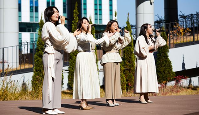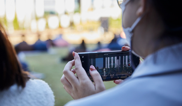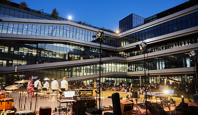 가을 햇살 완연했던 지난 2021년 10월 28일, 더 넥센유니버시티의 아름다움을 배경으로 삼아 음악 프로그램 Alive의 공연을 녹화하는 날이었는데요! 특별히 우리 회사의 심장부인 넓은 중정에서 야외 공연으로 진행됐답니다. 예쁜 회사에서 일하니까 이런 혜택을 누릴 수 있다니 정말 자랑스러운 순간이었어요! 일을 마친 넥센인들도 하나둘씩 중정을 채우기 시작했는데요. 중정을 둘러싼 산책로를 따라 늘어선 사람들의 시선이 한순간 무대로 집중됐어요. 과연 어떤 가수들이 우리 회사를 찾아왔을까요?