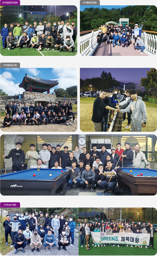 넥센인들이 함께 모여 활기차고 의미 있는 시간을 보낼 수 있는 기회를 마련하고자, 매년 양산공장에서는 체육대회와 야유회를 개최합니다! 함께 단합해 풋살부터 족구, 당구 등 여러 스포츠 경기들이 펼쳐지는데요. 서로 땀을 흘리며 빛나는 팀워크를 발휘했고, 모두에게 멋지고 활기찬 추억을 선사한 시간이었습니다.